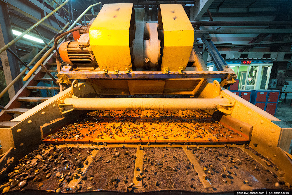 Мелкопереработанную породу отправляют на спиральные классификаторы (винтовые сепараторы), где все сырьё разделяется в зависимости от его плотности.